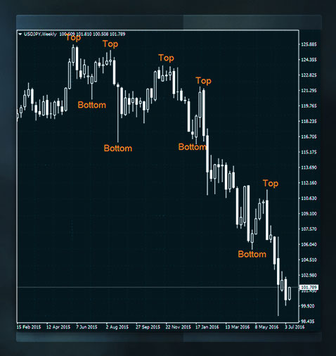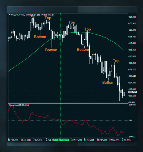 发现趋势一般的方法是目测。找到连续的更高的顶部和更高的底部表明趋势向上,出现连续的更低的顶部和底部表明趋势向下。等高的顶部和等高的底部表明市场横盘整理、无趋势。 尽管判断顶部和底部事后看来非常简单,交易员、尤其是初学者发现很难找到当前的趋势,这的确需要一些练习。判断趋势另一个常用的方式是在价格图表上附加用来找到市场方向的技术工具。技术指标和震荡指标 就属于这一类别,它们基于归纳统计等统计学概念。